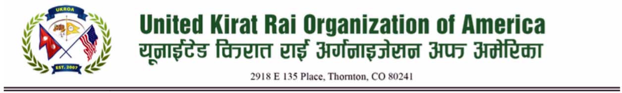 I hereby apply for the membership in the United Kirat Rai Organization of America (UKROA). I am at least 18 years of age and as applicable to the membership type below, I am a US Citizen or have a legal status in the US. I fully agree to abide by the bylaws, code of conduct, its mission, values, and objectives of the organization.